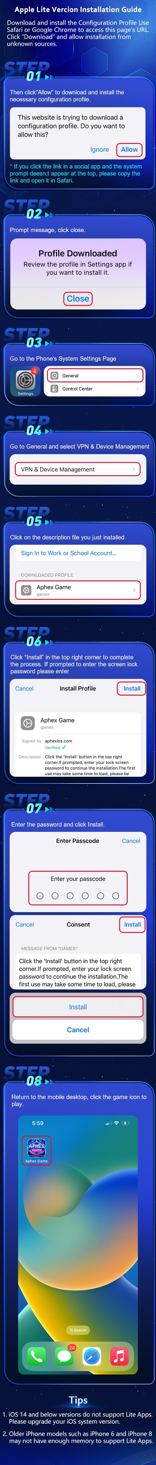 The configuration file (.mobileconfig) is being downloaded. Please install it on your device, then follow the guide below:
